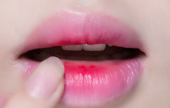 步骤三:用手指逐渐向双唇边缘晕开,打造出渐变的感觉。