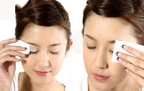 在棉片粘上卸妆油,在眼部轻轻擦拭;反复更换棉片进行擦拭,直到棉片完全干净为止; 再用化妆水对眼睛周围皮肤进行卸妆。