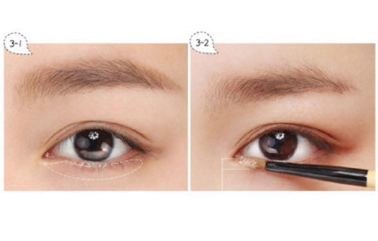 3-1眼睑处千万不要涂抹散粉,控制分量最小是为了让眼妆保持一定的湿润感!泛着水光的感觉。