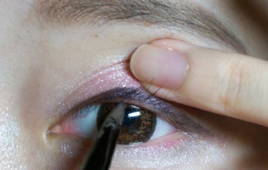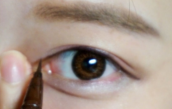 步骤十一:用棕色眼线笔定妆,画上内眼角。