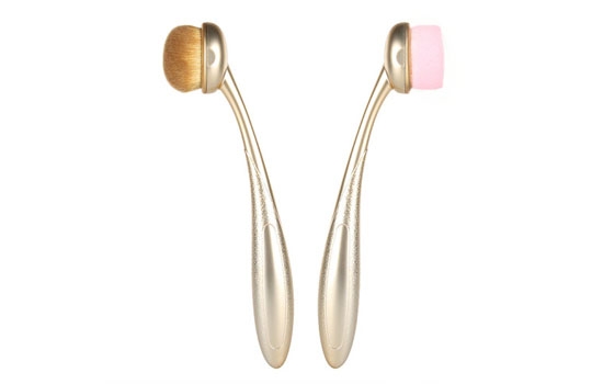 扁平的形状,是大家最常见也会经常使用到的液态粉底液的专用粉底刷,一般上粉底液使用尼龙质地的粉底刷比较好哦~但这款对化妆技术要求比较高哈,上妆效果比较轻薄,如果刷子刷在脸上的速度不够快速,上妆容易有粉痕的困扰哈。