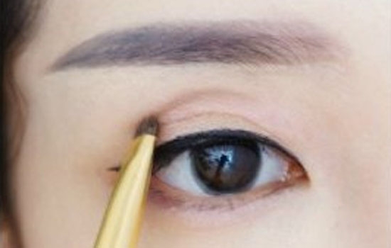 7.将深棕色眼影画在眼窝处注意只画眼球正上方一段哦。