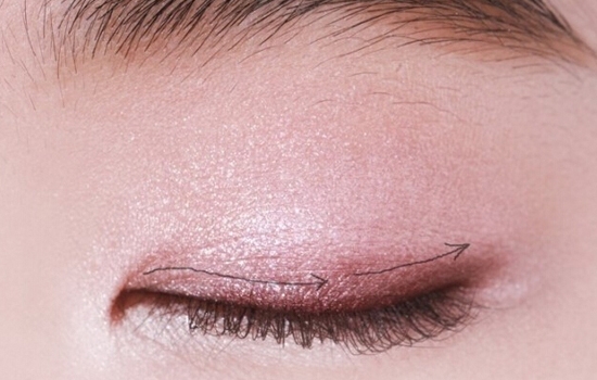用深葡萄紫色代替眼线沿着睫毛根部向眼尾晕染,打造深邃感的同时也让妆效更加自然。