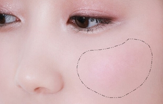 笑肌处扫上樱花粉的腮红,淡淡的粉色很清新。