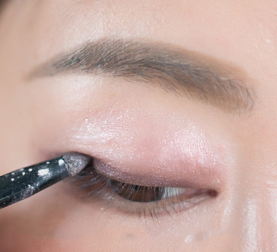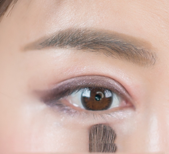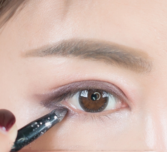 步骤八:最后沾取E色,涂抹去下眼睑前2/3的部分,与后1/3的眼线要稍稍晕染自然衔接。
