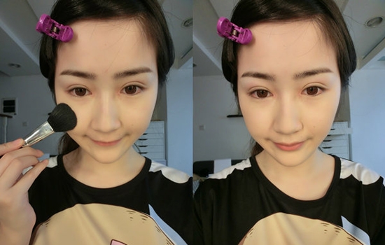 步骤三:以打圈的手法,用粉饼控油定妆,让妆容更加自然服帖。