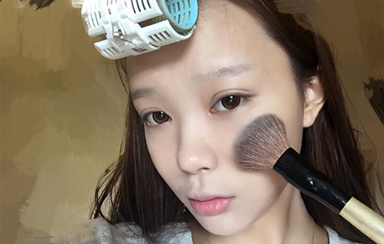 步骤五:用刷子沾取散粉,轻轻刷一层,全脸定妆。