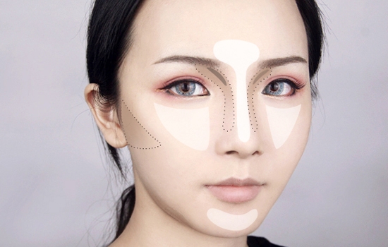 step9.鼻子部分的修容一定要少量多次,造近眉头部分自然晕开,不要有明显的界线,眼窝位置加深,混血感更好。注意高挺的鼻子是“梯形”一样的立体面,所以绝对不能两条轨道到底