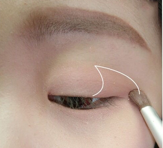 将深一色的眼影涂在眼尾后三分之一处直至显色。