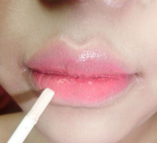 将唇部边缘涂抹遮瑕膏,唇彩涂抹在唇部中央,用手指晕开。最后涂抹一层透明唇蜜,让嘴唇看上去更加丰满莹润。