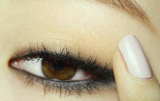 3.之后涂抹下眼线部位,做晕染让眼妆整体看起来更自然;