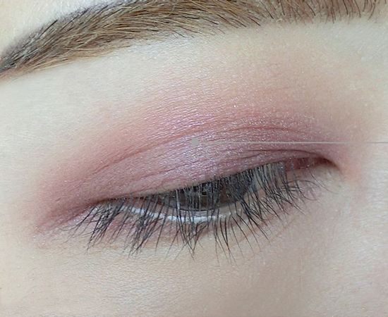 步骤二:用酒红色打满双眼皮褶皱内,自然向外稍微晕染。