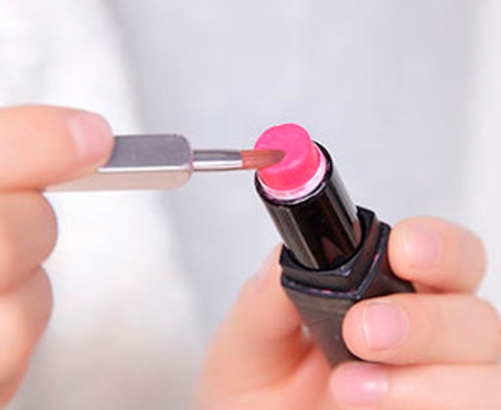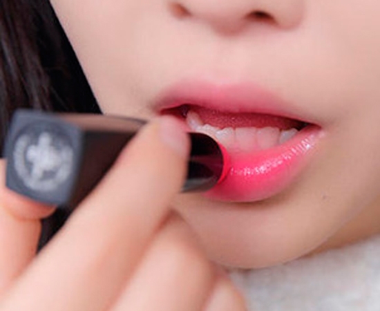 再直接用唇膏较重地涂抹在上下唇的最内侧,加强渐变效果。