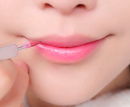 要打造温柔的渐变咬唇效果,所以不要涂满整个唇部