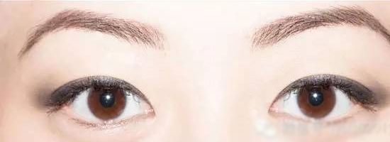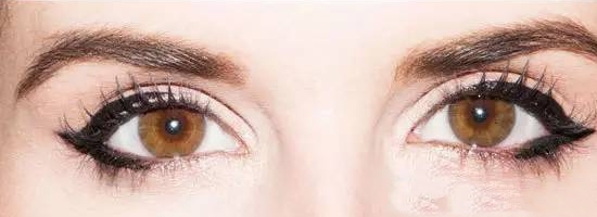 多人的眼睛是不对称的,描画眼线可以得到修正。对于大小眼情况,我们可以利用眼线的深浅和粗细来调节双眼,眼型较小的的一边,描画的眼线要稍长于另一边,宽度要略粗一些,要至少重复涂画两边以加深眼线颜色。另外,在眼尾的转角处,轻轻的斜向上45°增加一点宽度。