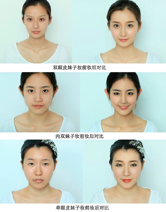 三个模特妆前妆后对比图