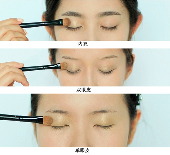 下眼影一样,内双妹子下眼影要比上眼影深,晕染面积要宽一些,显得眼睛深邃。