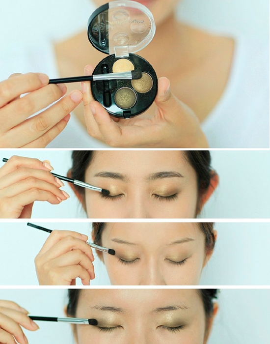 眼影不好控制的,可以先涂在手上磨细,再沾取手上的眼影均匀刷在眼部,眼影更服帖。