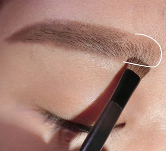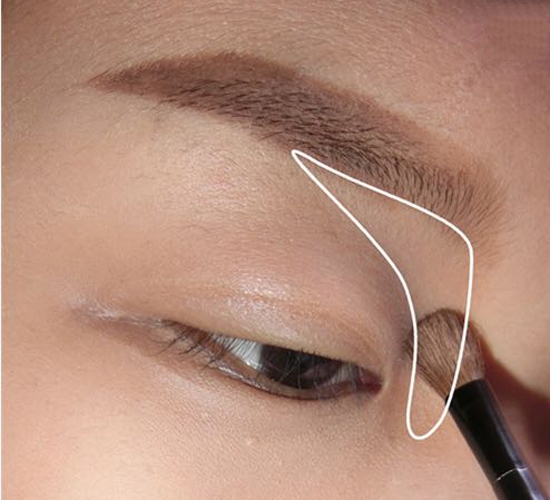 将三色眉粉的深色和中间色混合填满眉毛的后二分之一。中间色与最浅色混合填在框内的剩余处,眉头还是留出来的哈。