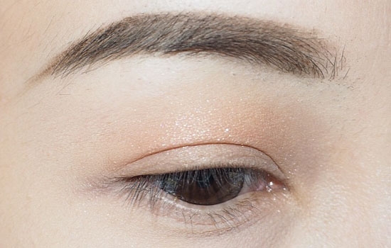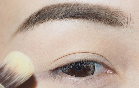 底妆后,用眼影刷沾取浅棕色涂抹在上眼皮打底。