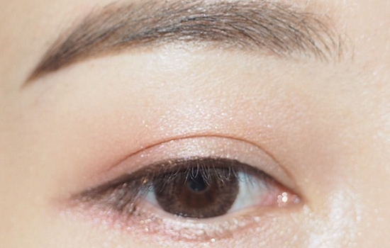 棕色眼线液笔画上眼线,切记不要画眼头和眼尾,只要画眼睛的长度。