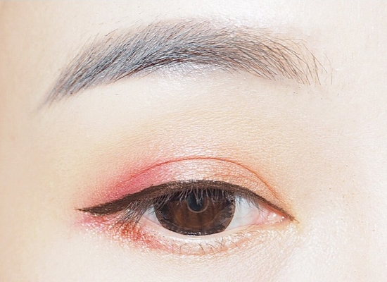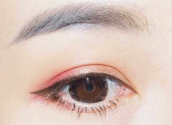 再用棕色眼线笔叠加在眼线的眼尾,并画上1/3下眼线,注意上下眼线的衔接。