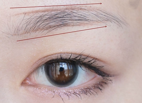 第一步:首先,平眉的要点是平且直。要粗一点,所以首先平平的画出眉框前半部分,稍微有点向上的角度,完全平直也不会好看。