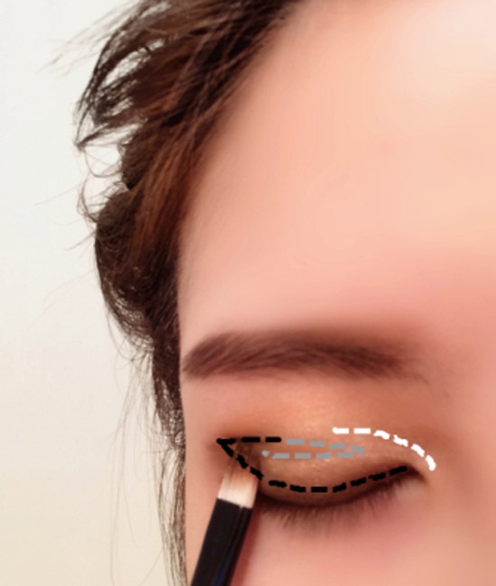 第七步:虚线的深浅颜色就代表眼影需涂的深浅顺序。