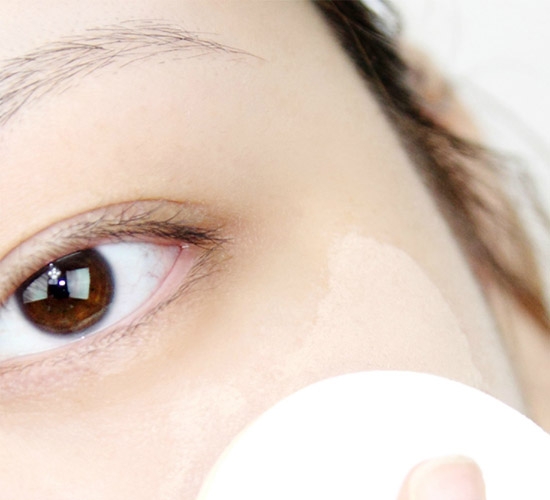 第一步:先将气垫粉底拍在脸上,记得拍均匀自然哦。