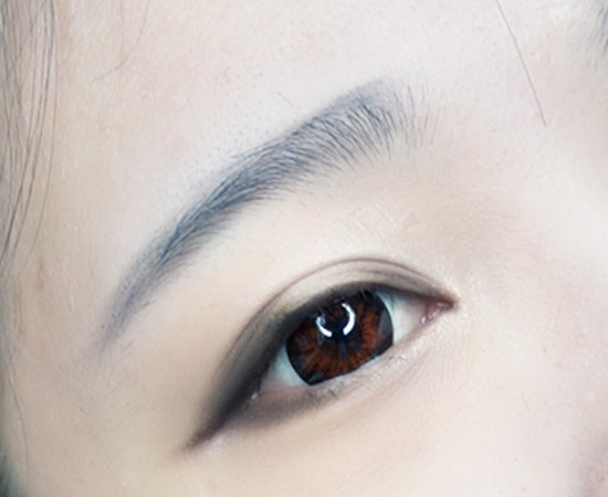 按照之前的眼影拉伸位置用棕色眼线笔将眼影快速描绘出,最后用睫毛膏将睫毛从根部向上刷。