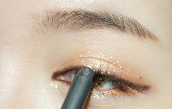 第七步:眼皮上中间部位刚刚使用的珠光眼影笔涂抹一下,这样的话更闪闪亮亮的感觉,更女神的气质!