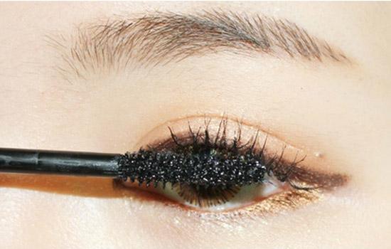 第九步:睫毛胶干后,从睫毛根部开始涂刷睫毛膏让假睫毛和本身睫毛自然贴合,打造自然感双眼。