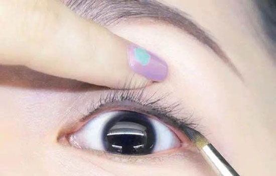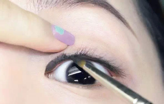 刷的那只手要用点力来对抗睫毛的阻力。画完眼线后可用无名指 稍微收尾,这样能让尖锐的眼线显得更自然柔和。