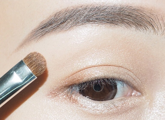 第七步:用扁刷沾取棕色眼影在眼尾画,并晕染自然。