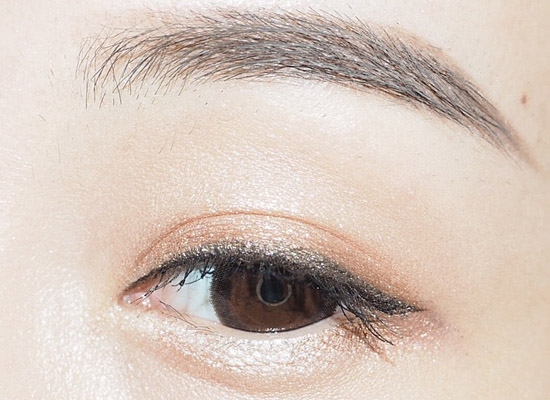 第十步:用平头刷沾取棕色眼影沿着睫毛根部往上晕开。可以在眼线不平整的部分多盖一点。