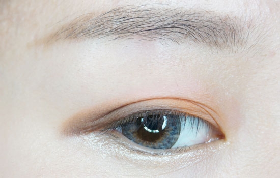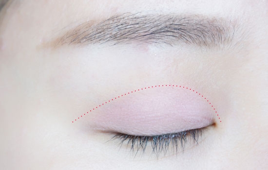 为了让眼睛看起来深邃一些,所以深棕色的眼影是不可缺少的,用深棕色从眼中晕染到眼尾。