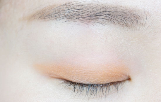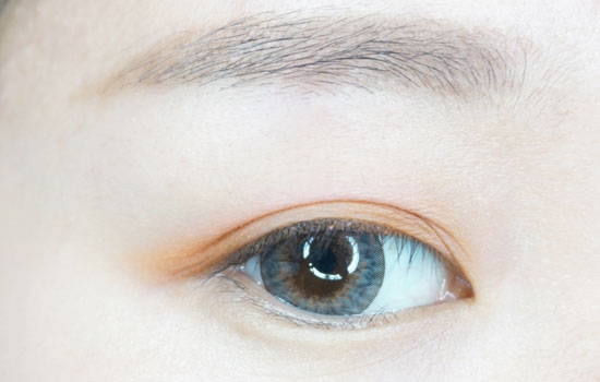 然后在用橙色的眼影晕染在眼皮折痕内。