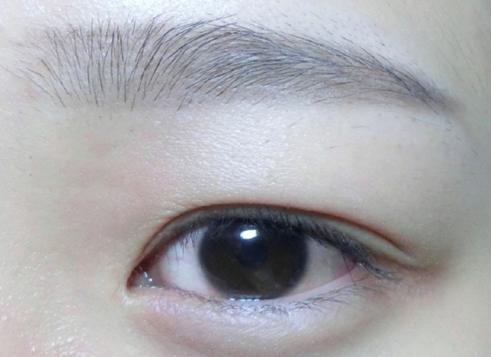 用眉笔填满眉框中空隙,眉头的颜色要比眉尾浅一些,晕染到位。
