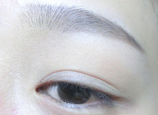 用浅棕色眼影扫在山根处及眼窝,淡淡的阴影可以帮助眼皮不肿哦。
