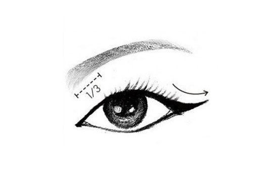 画法技巧:所以画眼线时一定要尽量让眼睛看起来更大一些。不用从眼头的部位开始画,建议从眼睛的1/3部位开始画一条较直的眼线,眼尾的部位短粗而平直最好。