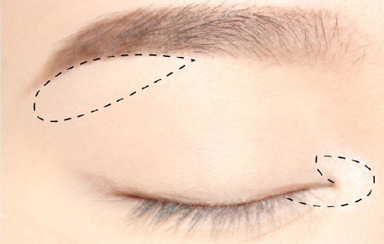 第四步:用米色眼影提亮眼头和眉骨,想要卧蚕效果的可在下眼睑前三分之二处扫上一点。