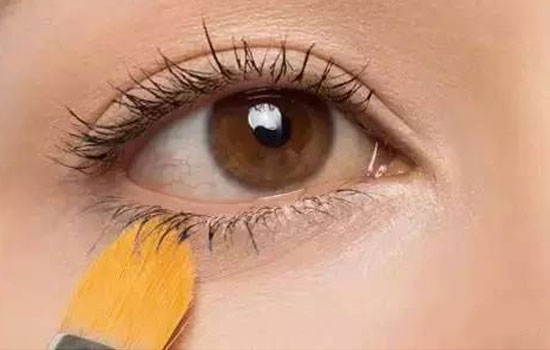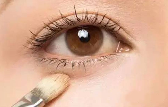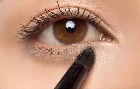 为了避免卧蚕看起来浮肿,卧蚕下方处以浅棕色眼影勾勒下缘。