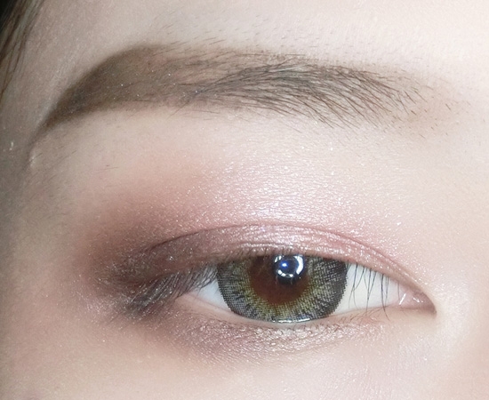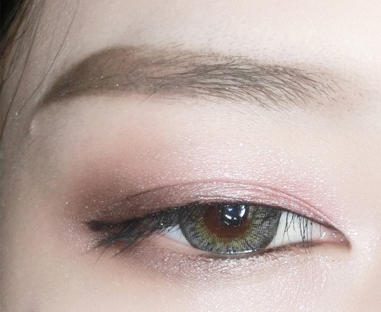 用棕色眼影继续加深眼尾小三角,余粉从眼尾至眼头晕染出下眼影。