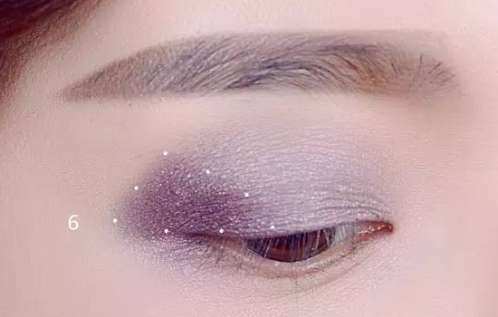 用5号色画在眼窝的二分之一,慢慢的晕染开,看图就可以看出来真的很有层次感,眼尾的三角区域,为了让眼睛看起来深邃一些,所以眼尾晕染是必须的。