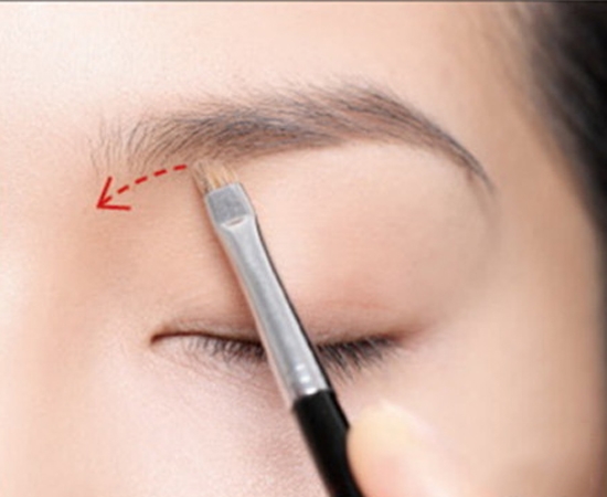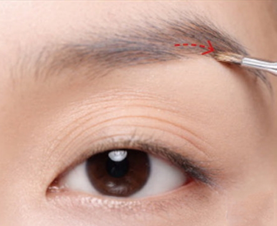 接着用最浅的眉粉,由后往前画把眉头加宽一点。