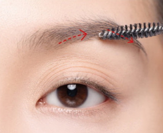 最后透明睫毛膏或者是眉毛雨衣,从眉头往眉峰朝发际线45度刷过,眉峰到眉尾顺着往下梳理。
