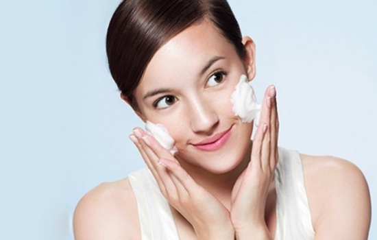 第六步:用温水清洗干净后,最后用洁面产品深层清洁面部,减少对面部皮肤伤害。