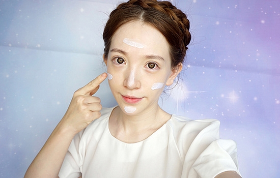 在粉底之前,我会用兰芝的紫色隔离霜来调整肤色,使用方法和平时涂抹乳液的一样简单。
