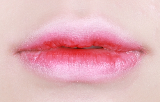 最后唇妆的部分啦,我用到的是口红+唇油打造水感渐变唇。