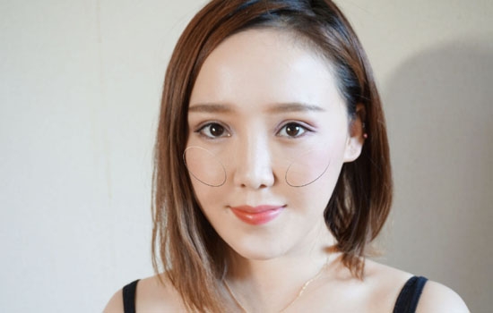 第十步:用浅粉色大面积铺在眼窝及下眼睑处。